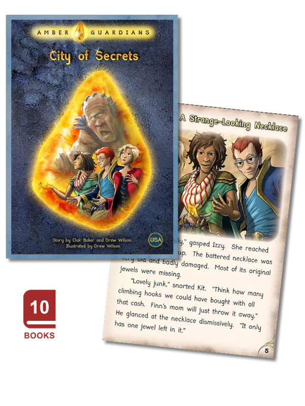A chance discovery of an ancient necklace in an old bazaar soon leads Finn and his friends on an incredible quest. Bridges the gap between structured and mainstream reading. With a higher ratio of text to illustration, this series allows the reader to make the important step towards understanding meaning purely from text.